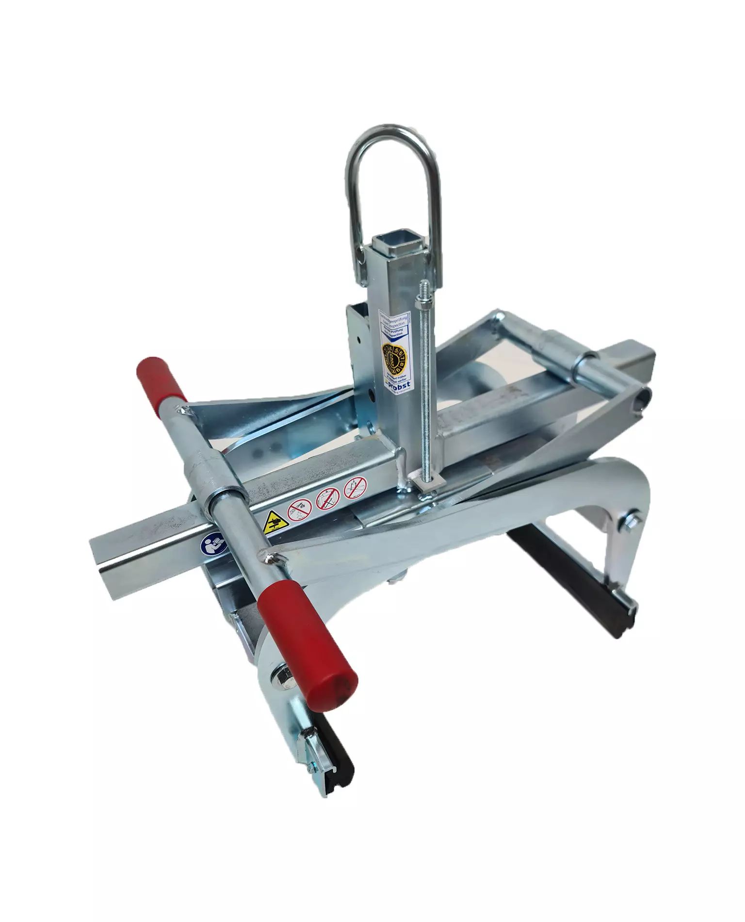 Egenskaper: Lyftögla för lyftkrok, automatisk lastfrigöring, utbytbara gripdelar, snabbjustering för gripbredd.